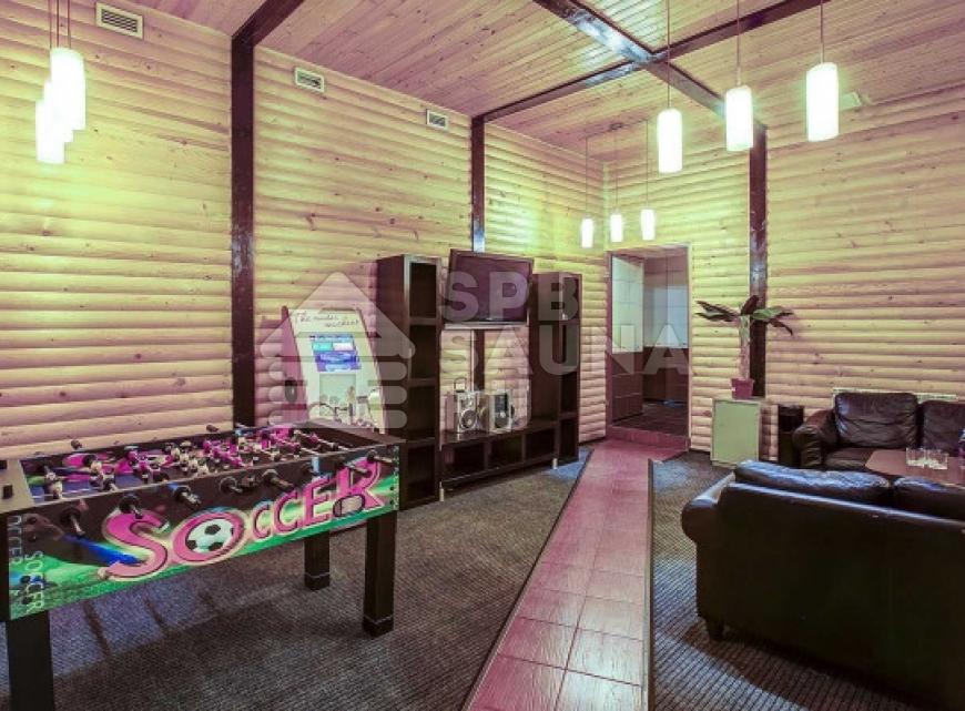 - гостиная с небольшим столом, кожаными диванами, ТВ, музыкальным центром, DVD караоке и настольным футболом;